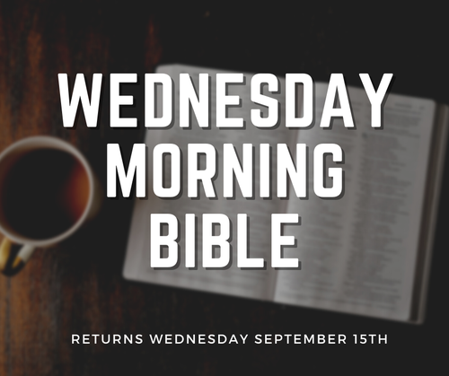 Come out on Wednesdays to enjoy Coffee and Fellowship around a deep study in God's Word together! Wednesday Morning Bible generally lasts for about an hour each week. We'd love to have you!