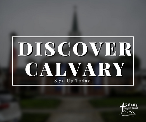 Are you considering joining the Calvary Baptist Family? We are thrilled to welcome you if that's where God is leading you right now! In order for you to get on track for the process, you will first need to attend our new members class which is called "Discover Calvary." If you click the link below, you can go ahead and sign the interest form to attending the next class. Once there is enough interest, we will announce our next class! If you have any questions, please reach out to the church office!